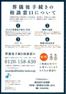 ご葬儀の後の手続きやお困りごとがありましたら ご相談をお受けいたしますのでどうぞご遠慮なく ご連絡くださいませ。 / アスカセレモニーは町屋斎場での直葬火葬式の対応ができる葬儀社です アスカセレモニーは町屋斎場での家族葬 […]