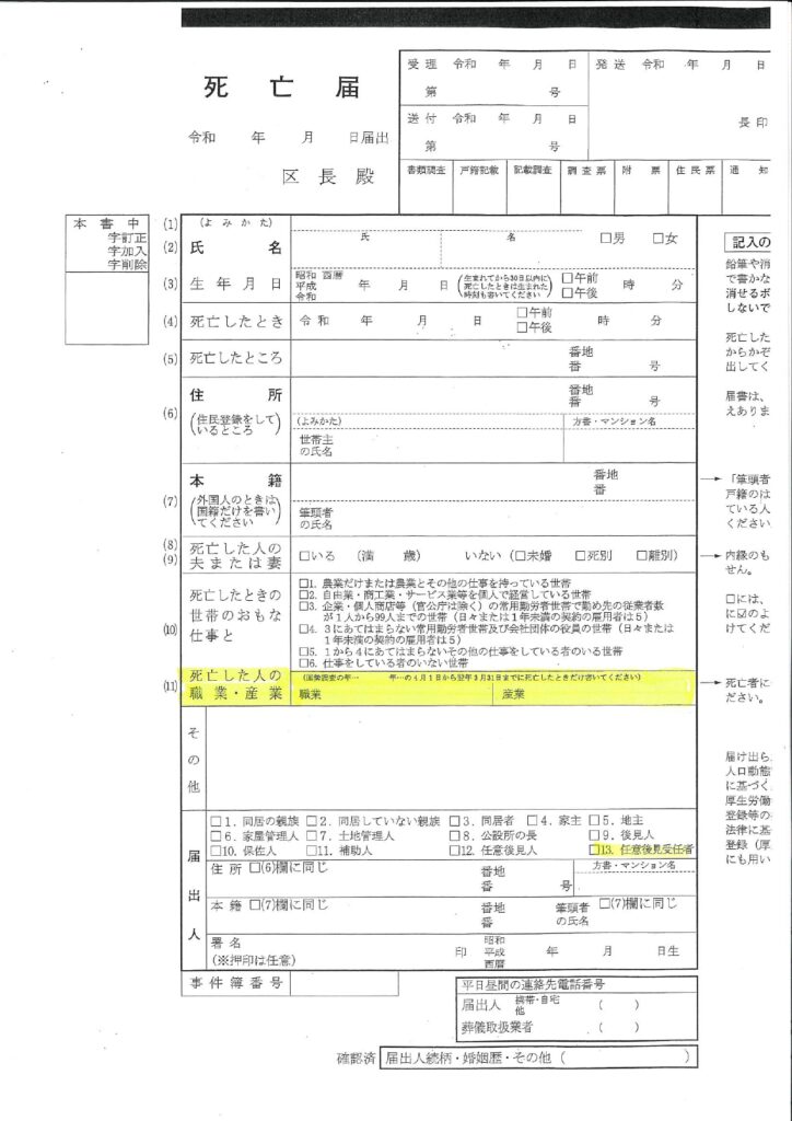 死亡届の職業欄