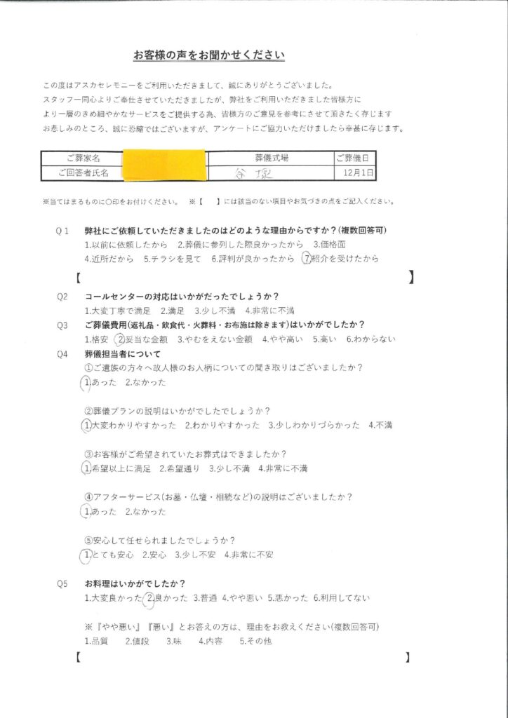 Q1、 ご遺族の方々へ故人様のお人柄についての聞き取りはございましたか?