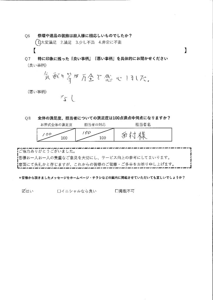 Q6、祭壇や遺品の装飾は故人様に相応しいものでしたか?